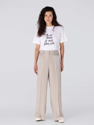 Ten tweede is er voor elke vrouw een passende broek. Een van de populairste stijlen op dit moment is de wide leg jeans. Deze jeans is perfect voor vrouwen die op zoek zijn naar een broek die zowel trendy als flatterend is. Dewide leg pasvorm zorgt voor een gestroomlijnd silhouet en benadrukt de taille, waardoor het een favoriete keuze is onder veel vrouwen. Naast jeans zijn ook de high waist modellen helemaal in de mode. Combineer een wijde jeans met een aansluitende top voor een stijlvolle en trendy look.