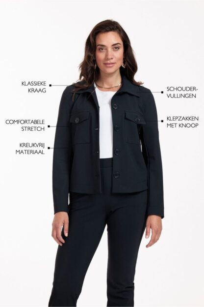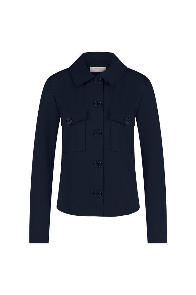 De Claire bonded jacket van Studio Anneloes is een musthave uit onze Essentials collectie. Dit blauwe jasje, gemaakt van Bonded Travelstof, combineert comfort met duurzaamheid. De regular fit, klepzakken op de borst, een strakke knoopsluiting en lange mouwen zorgen voor een veelzijdige en tijdloze stijl die geschikt is voor elke gelegenheid.