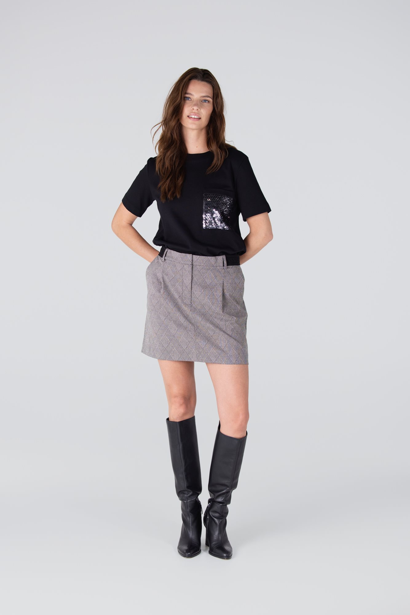 De Dani rok is een speelse en stijlvolle toevoeging aan je garderobe. Deze korte rok heeft subtiele bandplooitjes die zorgen voor een flatterende pasvorm en extra flair. De luxe elastische tailleband met logo voegt een sportieve twist toe, terwijl de steekzakjes voor en paspelzakjes achter de rok een functionele en verzorgde afwerking geven. Perfect om te combineren met een casual top een chique blouse of oversized blazer — Dit rokje is jouw nieuwe go-to voor elke gelegenheid.