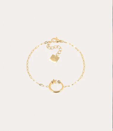 Fijn vergulde stalen schakelarmband met een rond hanger met een ironium en een ster.