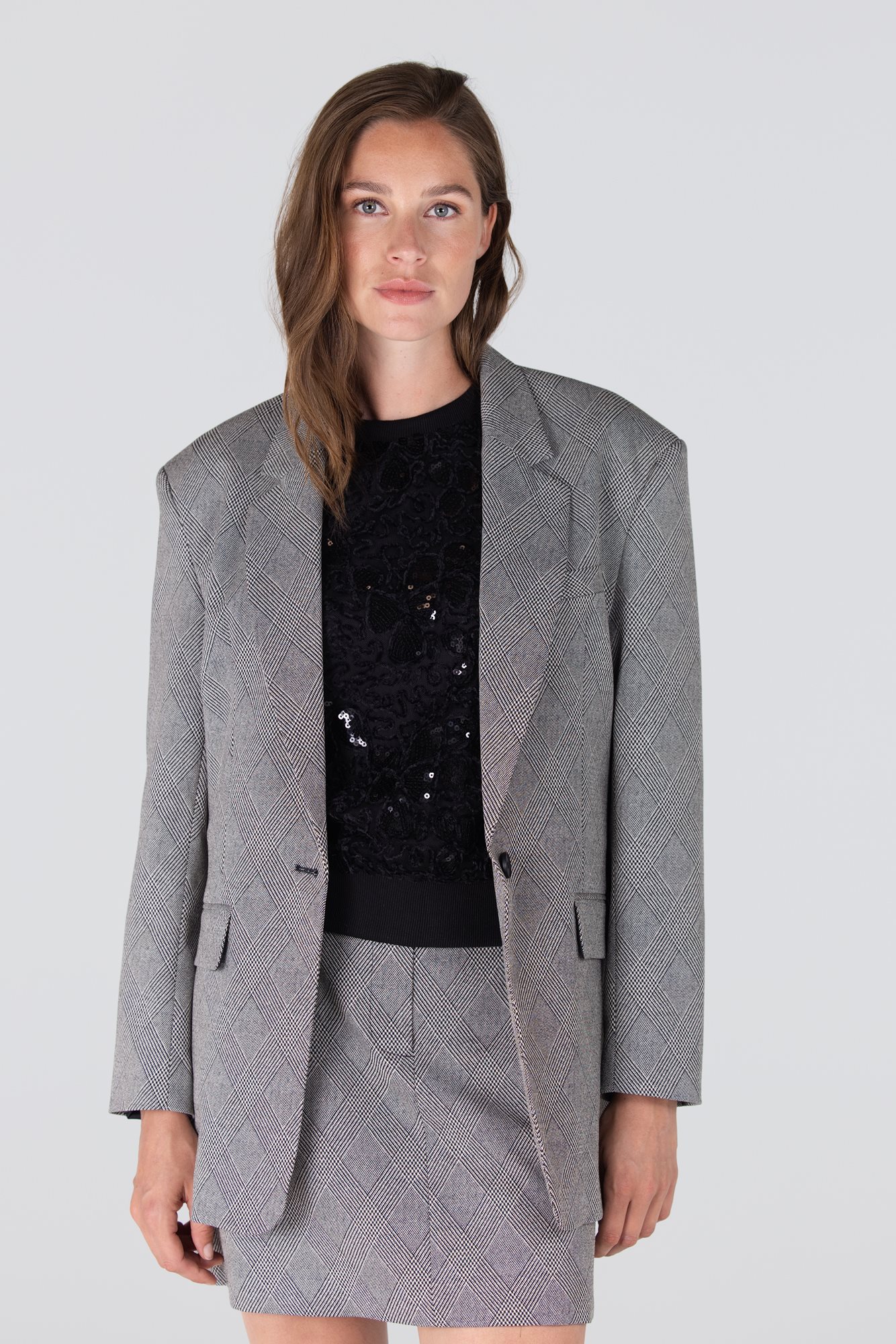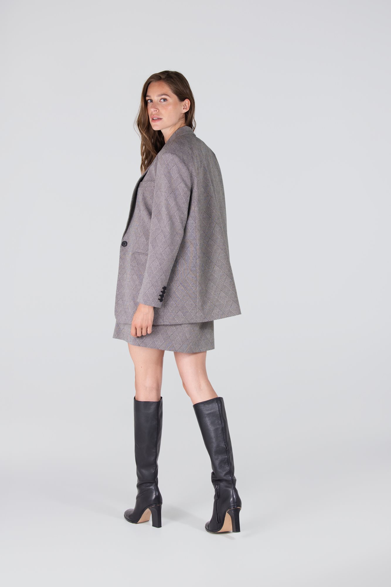 De Devi blazer is een krachtige blikvanger in je garderobe. Met zijn oversized pasvorm en schuine ruit straalt hij moeiteloos elegantie en moderniteit uit. De blazer sluit met één knoop en heeft klassieke klepzakken en een pochetzakje voor een stijlvolle finishing touch. De decoratieve knopen op de mouwen geven deze blazer net dat beetje extra flair. Draag ‘m solo voor een nonchalante look of als set met de Denise pantalon voor een indrukwekkende tailored outfit.
