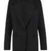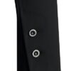 De Fran blazer uit de basiscollectie van Studio Anneloes past helemaal in het modebeeld van nu, maar het heeft ook een tijdloos karakter. Het is een zwarte boyfriend blazer met klepzakken die naar binnen gevouwen kunnen worden. Et voilà: je hebt paspelzakken. Verder heeft dit item schoudervullingen en ietwat wijde mouwen met knopen. Het is een wat langer model dat over de bil valt.