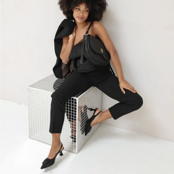Deze elegante slingbacks zijn helemaal van nu deze kan je niet meer missen in de garderobe. Gemaakt van luxe materialen met subtiele accenten en een knipoog naar de laatste trends. Deze slingbacks zijn gemaakt van luxe leer en is voorzien van een opvallend strass steentjes. Met deze mooie slingback geef je ieder outfit een chique en vrouwelijke uitstraling! Maar ook weer super stoer onder een jeans.