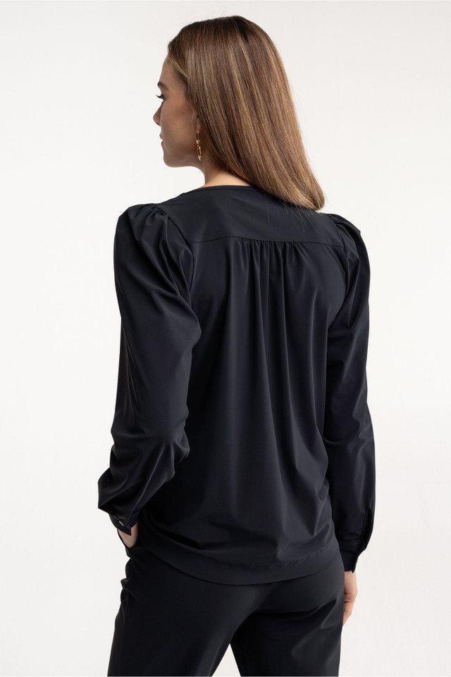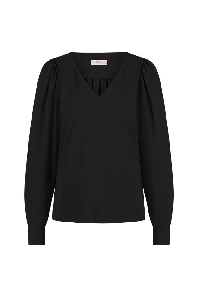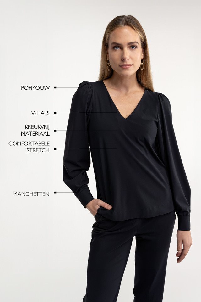 De Les top van Studio Anneloes is een elegante en veelzijdige toevoeging aan je garderobe. Uitgevoerd in een tijdloze zwarte kleur, heeft deze top een regular fit die perfect aansluit op het lichaam. De subtiele V-hals en plooien op de schouders geven het ontwerp een verfijnde uitstraling, terwijl de bloezende mouwen met smockafwerking een speels en vrouwelijk accent toevoegen. Gemaakt van onze Medium Travelstof met gerecyclede garen, biedt deze top niet alleen comfort, maar ook een duurzame keuze voor je garderobe.
