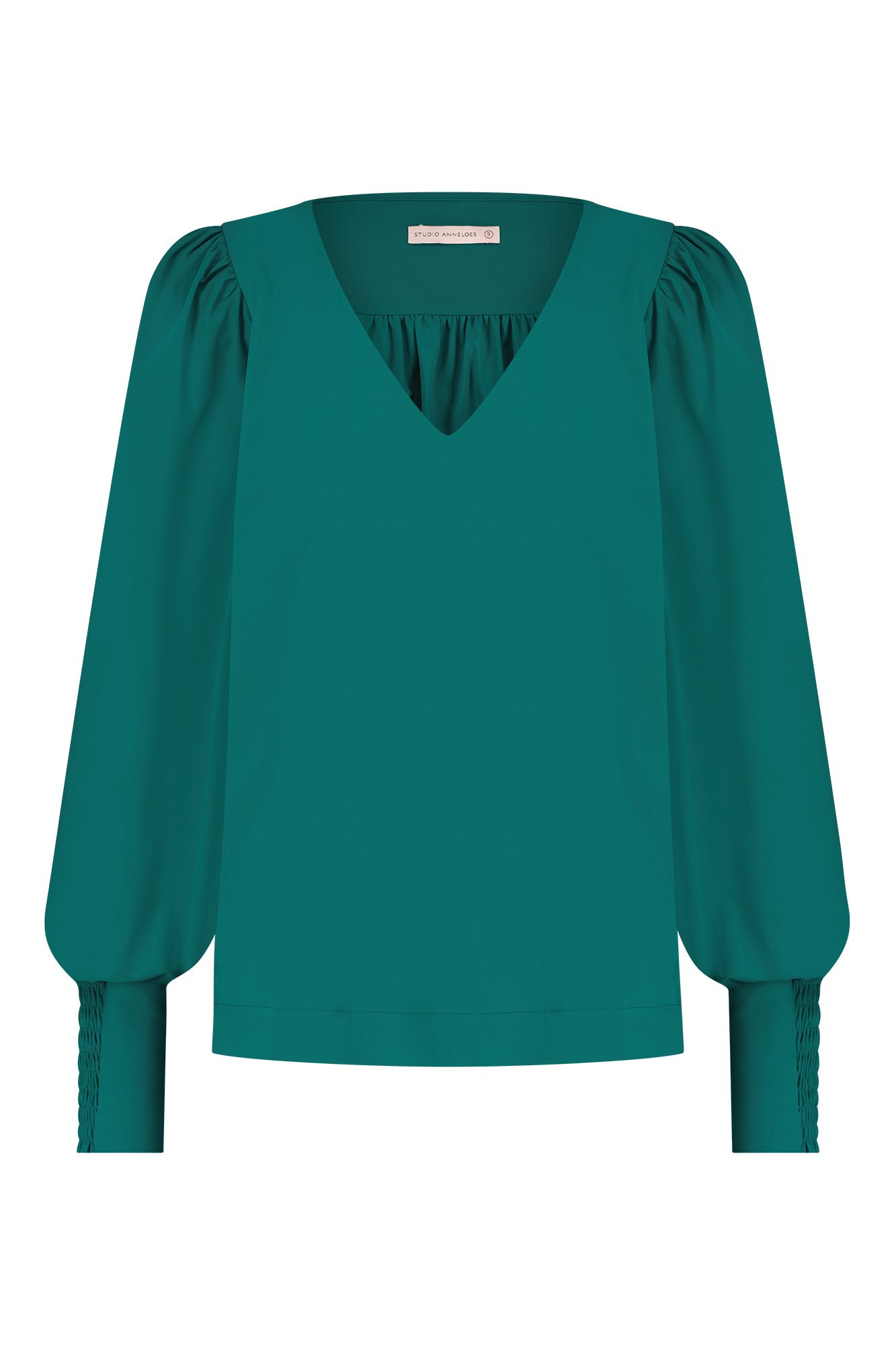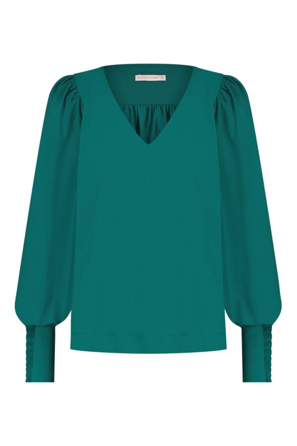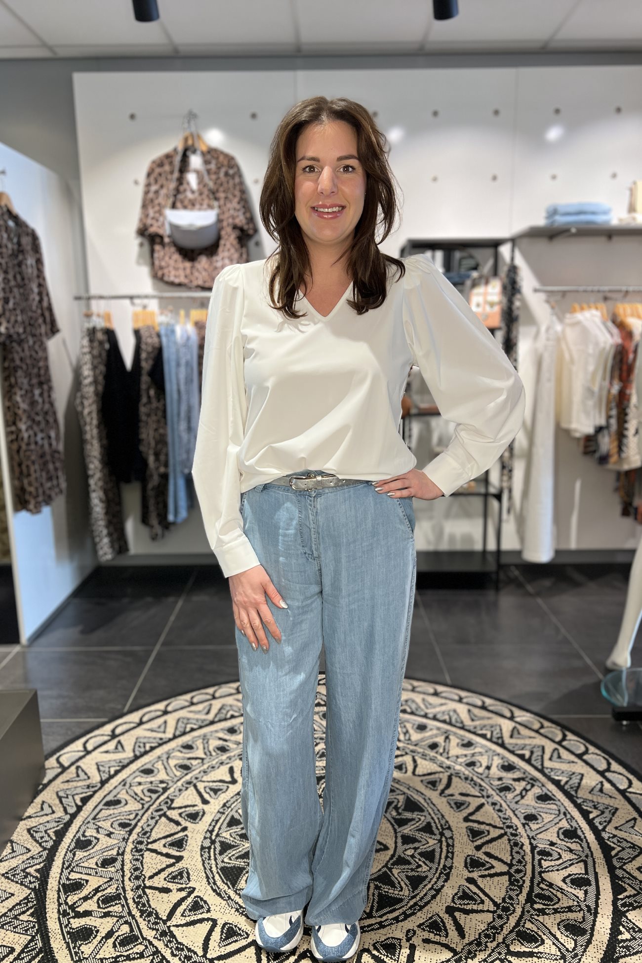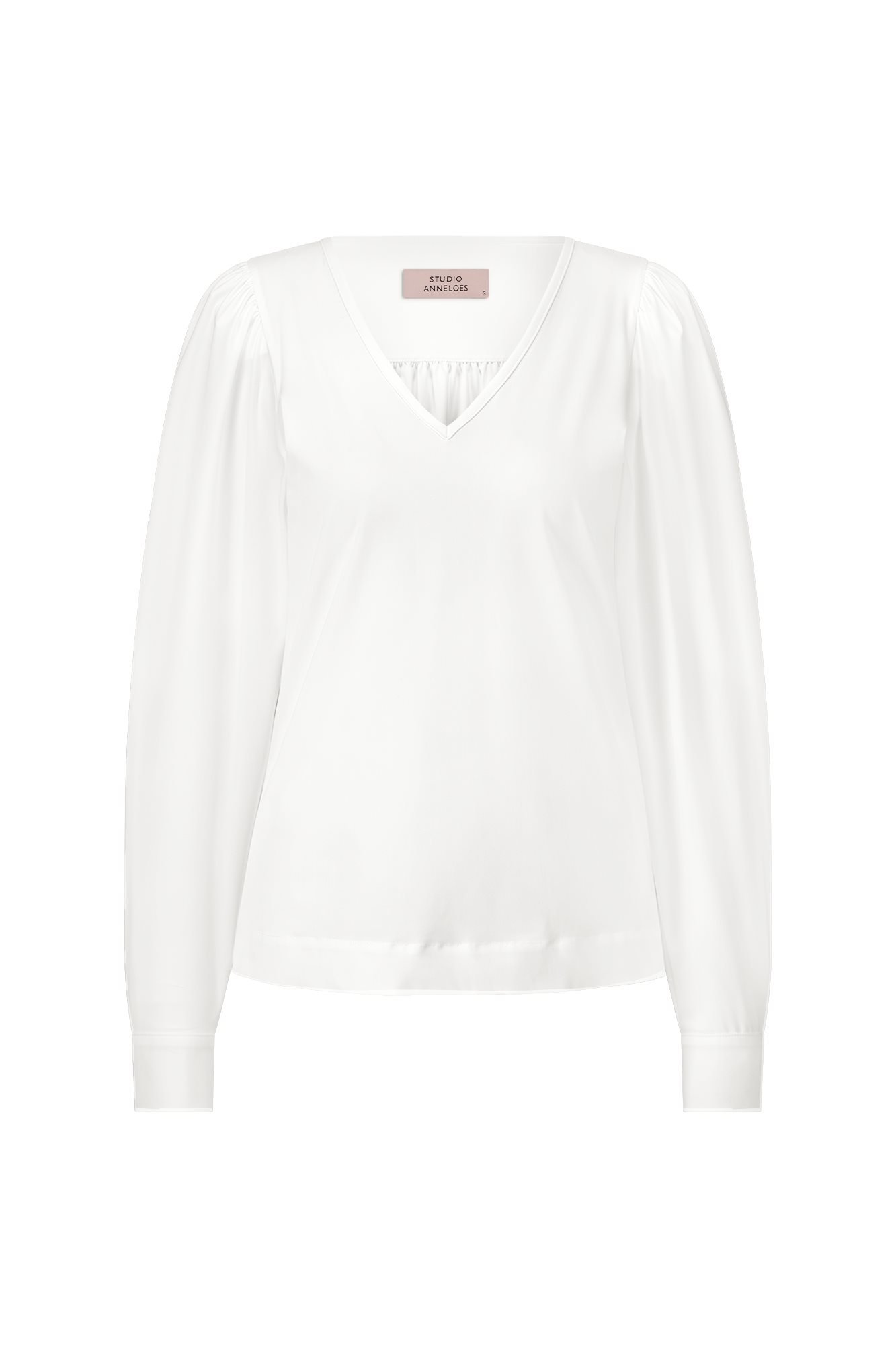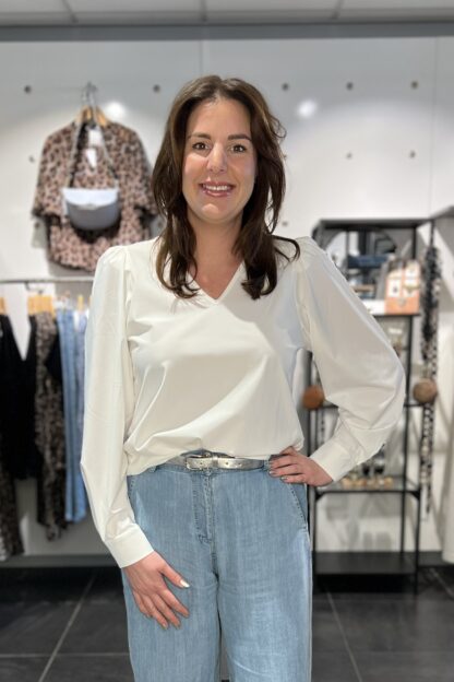 De Les top van Studio Anneloes is een elegante essential die niet mag ontbreken in je garderobe. Deze top in latte heeft een regular fit en is gemaakt van Medium Travelstof, wat zorgt voor een soepele en comfortabele pasvorm. De V-hals geeft een vrouwelijke uitstraling, terwijl de subtiele pofmouwen met manchetten een verfijnde en modieuze touch toevoegen. Perfect voor zowel zakelijke als casual looks.