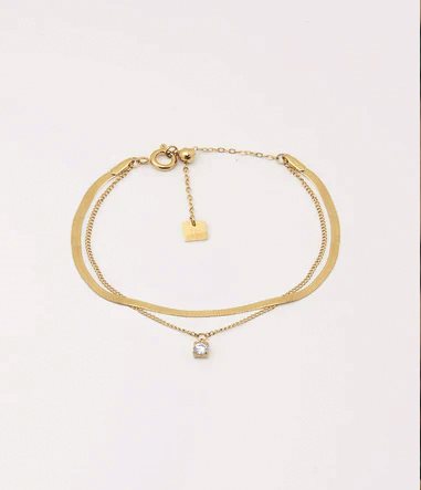 Schuifarmband met dubbele ketting in effen of verguld staal, met 1 zirconium.