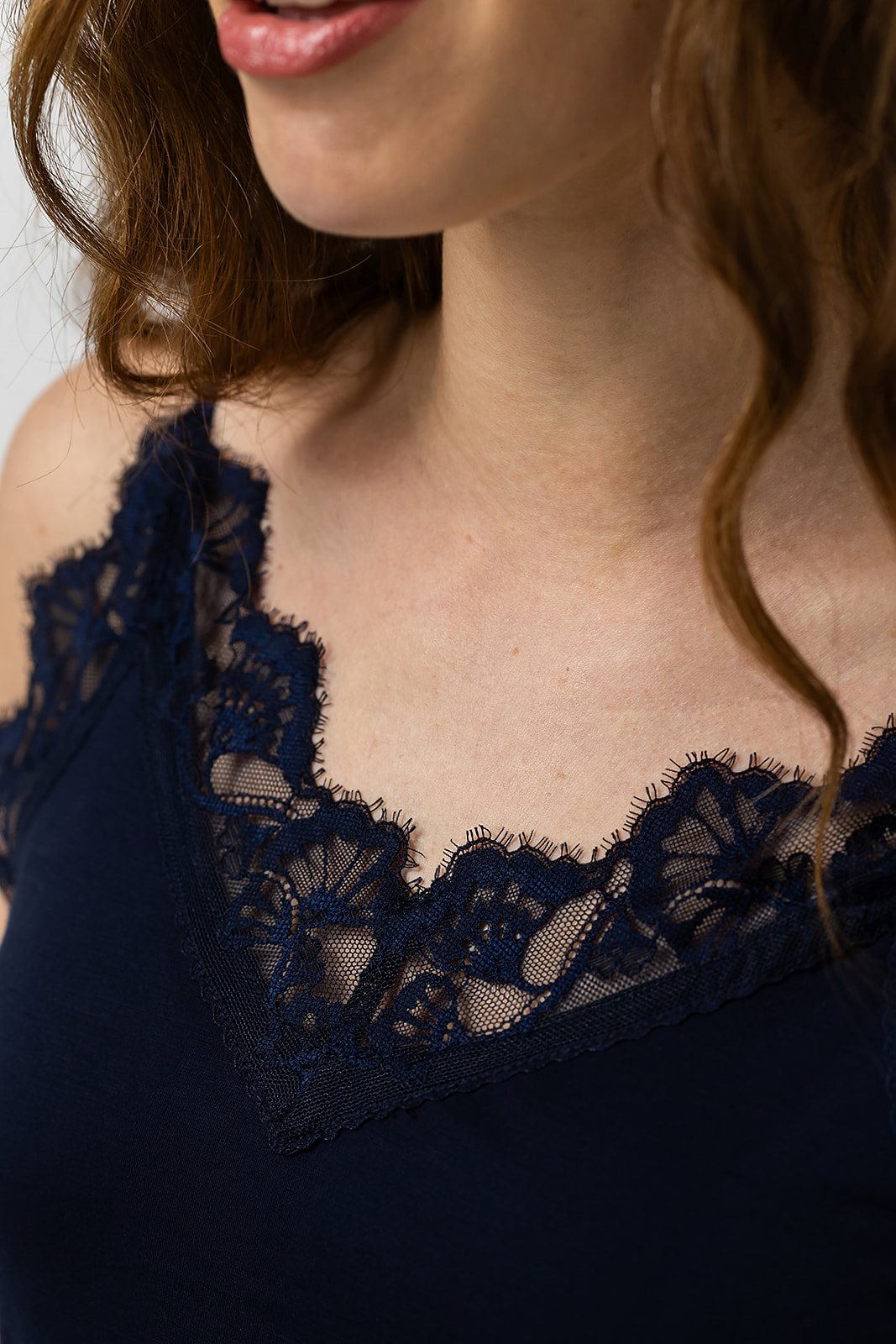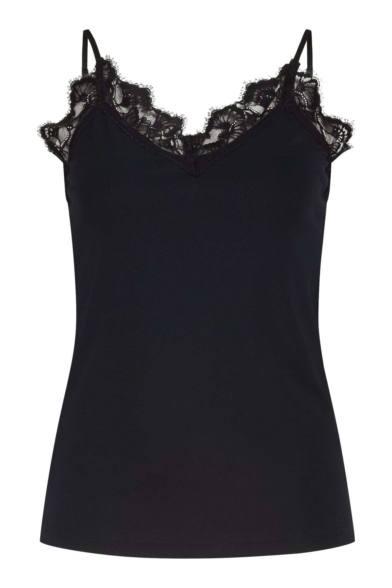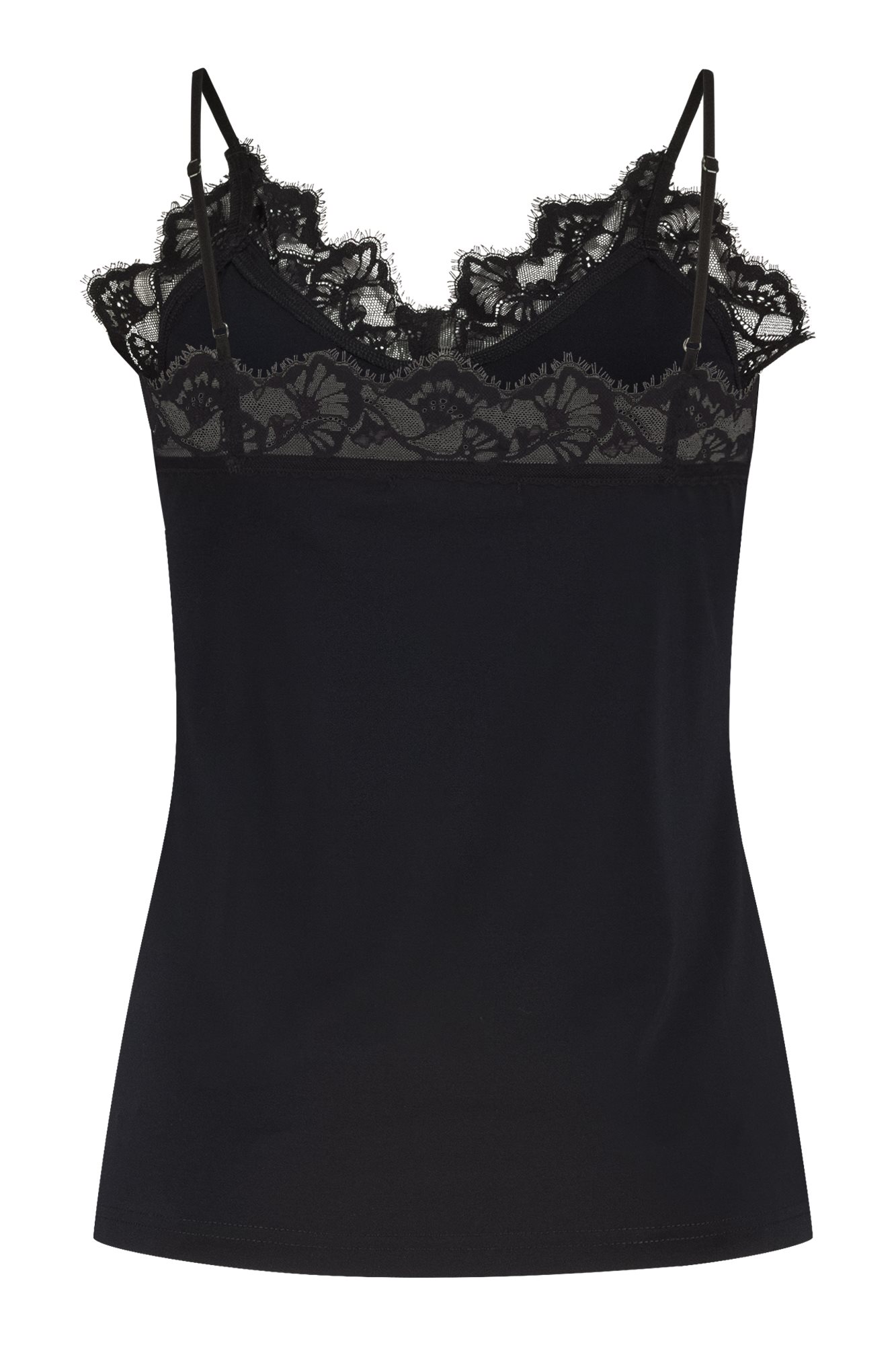 Of je ‘m nu solo draagt of onder een blazer, deze spaghettitop met kantdetails is altijd een goed idee. Gemaakt van comfortabel stretchmateriaal en verfijnd afgewerkt met kant aan de boorden. Een veelzijdige essential die stijl en gemak moeiteloos combineert.