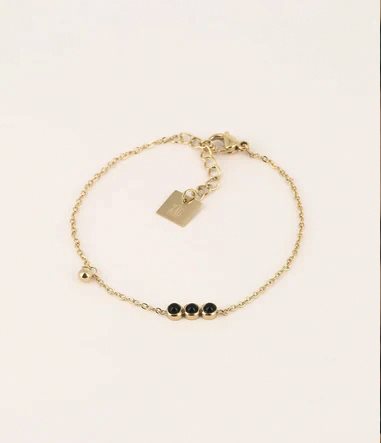 Stalen kettingarmband verguld met fijn goud met een trio edelsteen.