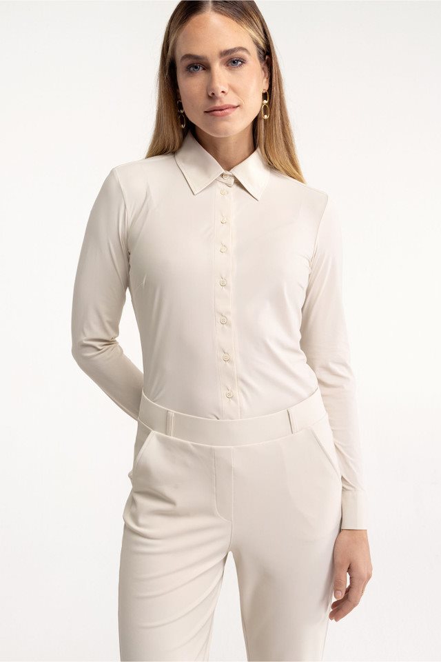 De Poppy blouse van Studio Anneloes is dé essentiële toevoeging voor vrouwen die hun taille op een subtiele en elegante manier willen benadrukken. Deze uni kit blouse straalt tijdloze klasse uit met haar grote klassieke kraag, verfijnde knopenlijst, ronde zoom en manchetten met dubbele knoopsluiting. De regular fit zorgt voor een mooie, comfortabele pasvorm die je figuur op zijn best laat uitkomen.