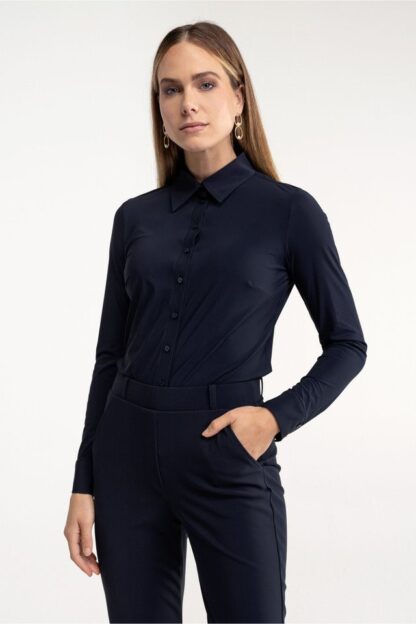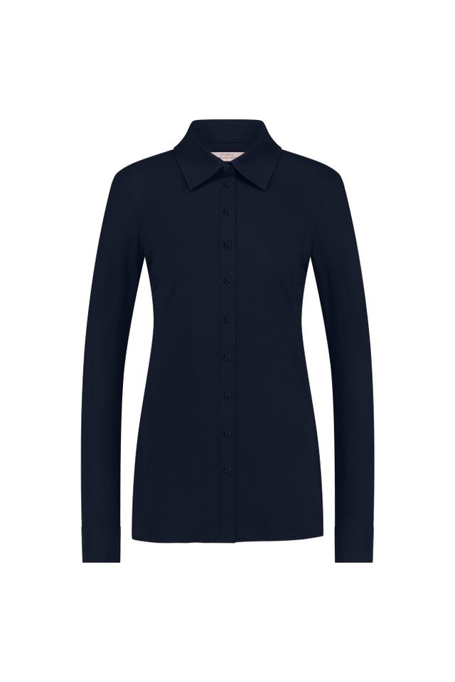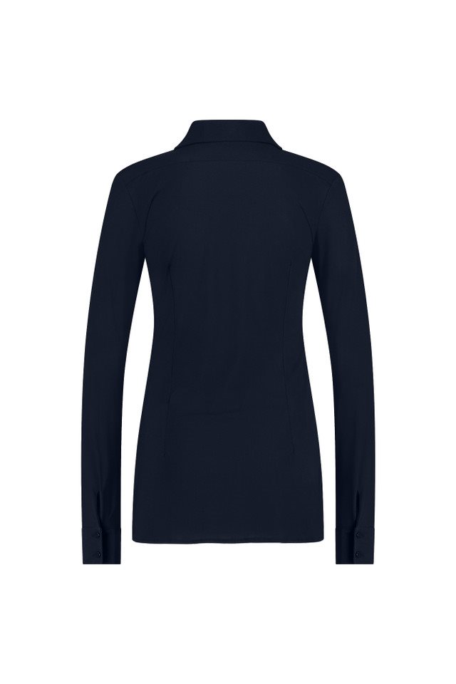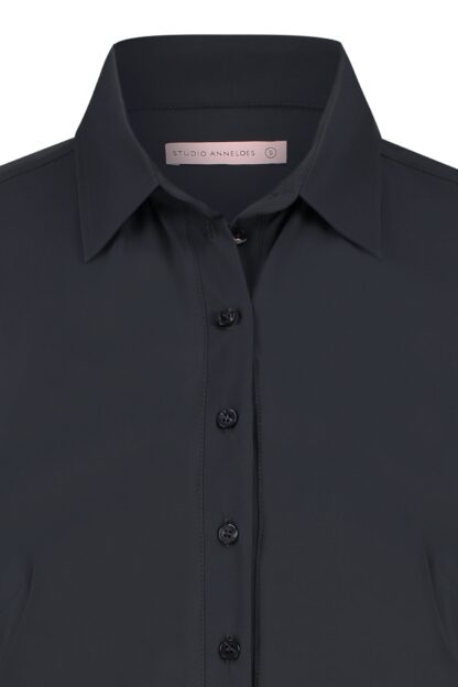 De Poppy blouse van Studio Anneloes is dé essentiële toevoeging voor vrouwen die hun taille op een subtiele en elegante manier willen benadrukken. Deze uni donkerblauwe blouse straalt tijdloze klasse uit met haar grote klassieke kraag, verfijnde knopenlijst, ronde zoom en manchetten met dubbele knoopsluiting. De regular fit zorgt voor een mooie, comfortabele pasvorm die je figuur op zijn best laat uitkomen.