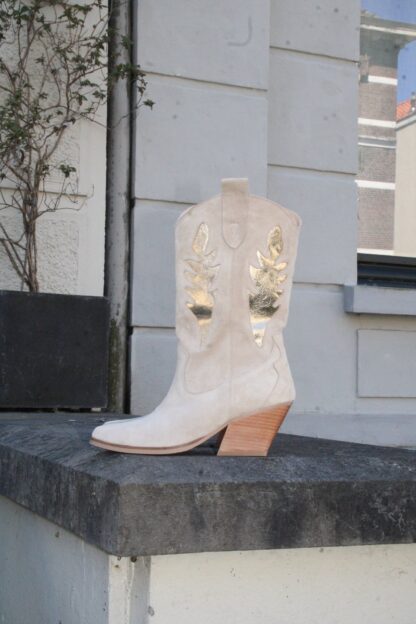 Ga voor een opvallende, stoere look met deze western laars! Deze city laars heeft een rechte schacht, een spitse neus en een stevige schuine blokhak bekleed met leer. Het bovenwerk is uitgevoerd in soepel zacht suede. Draag ze vrouwelijk met een rok of jurk!