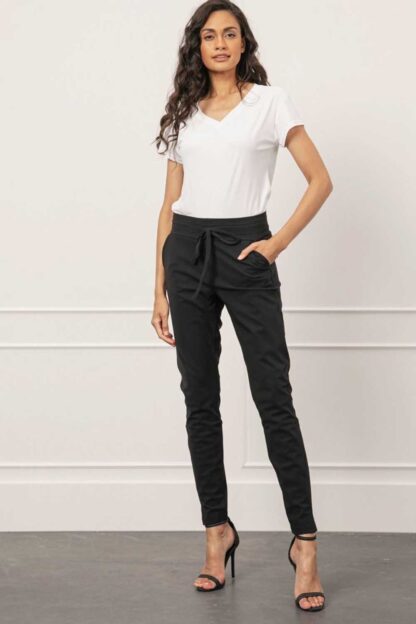 De Stairdown trousers kan niet meer ontbreken in de basiscollectie van Studio Anneloes. De broek is gebroken wit en heeft een luxe uitstraling, wat onder andere door de zakverwerking en de Heavy travelstof komt. Verder herken je dit item aan de splitjes in de pijpen, een drawstring in de tailleband, steekzakken voor en faux paspelzakken achter.
